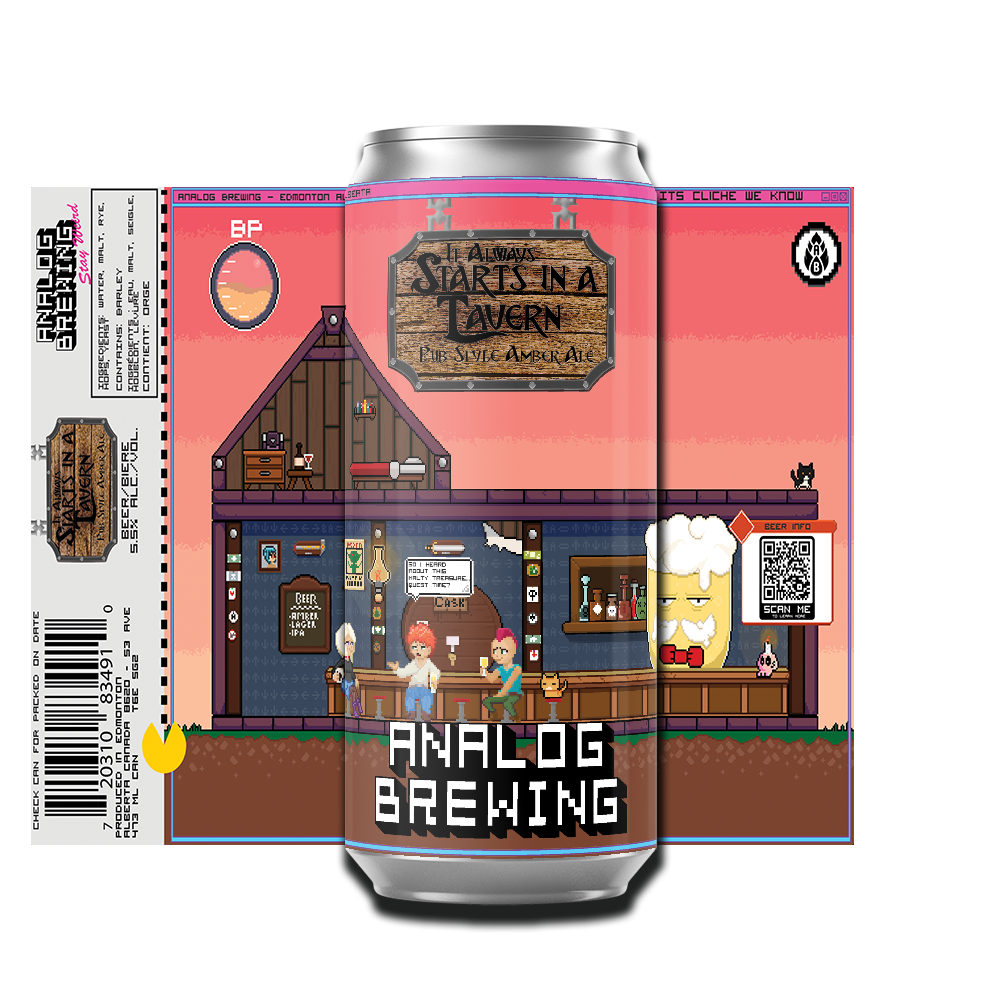 Analog Brewing’s It Always Starts In A Tavern is a pub-style amber ale crafted for classic gatherings and great stories. With a rich body and a subtle touch of rye malt, it’s made to pair perfectly with your favourite comfort foods and pub classics.